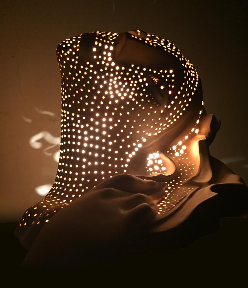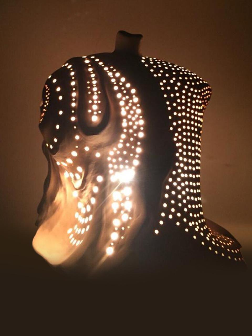Discover a breathtaking fusion of art and light with this unique sculpture-lamp, crafted by renowned artist Gevorg Yeghiazaryan. Made from pure Limoges porcelain, this piece captures an ethereal beauty that’s as mesmerizing by day as it is by night. The delicate porcelain form is adorned with hand-painted leaves, adding a touch of nature's elegance to its flowing, sculptural design. When lit, this masterpiece emits a soft, enchanting glow through its intricate perforations, casting an ambient light that transforms any room into a sanctuary of art and warmth. Ideal for art enthusiasts and those with refined taste, this lamp is more than illumination—it’s a statement of luxury and creativity, perfect for any sophisticated home.