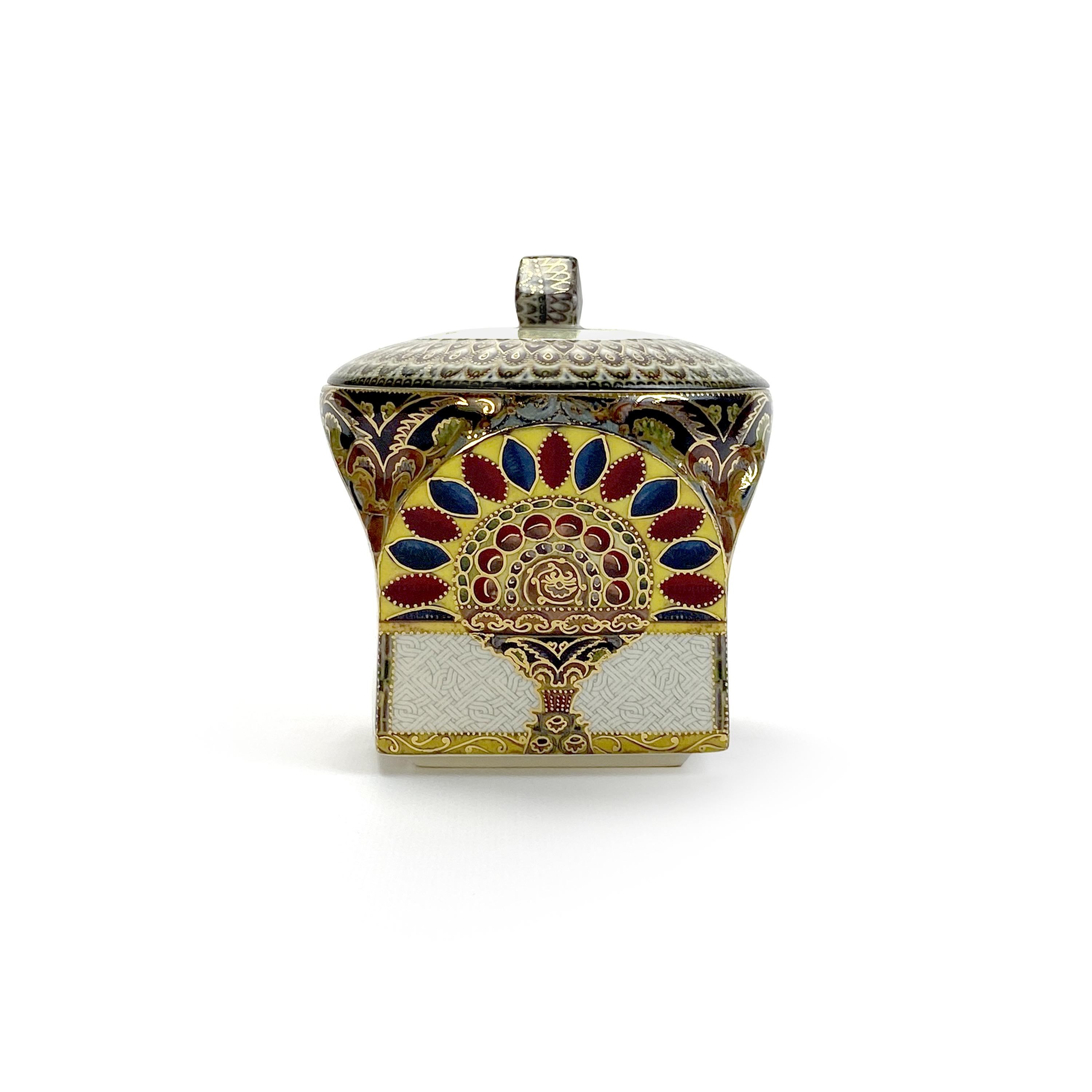 This exquisite porcelain sugar bowl, adorned with Eastern ornamentation, is a stylish and functional addition to your table. The vibrant pattern in shades of gold, red, purple, and yellow highlights the luxury and sophistication of the piece. Crafted with precision and elegance, this sugar bowl is not only practical for everyday use but also serves as a decorative item, adding a touch of Eastern culture and refinement to your home.