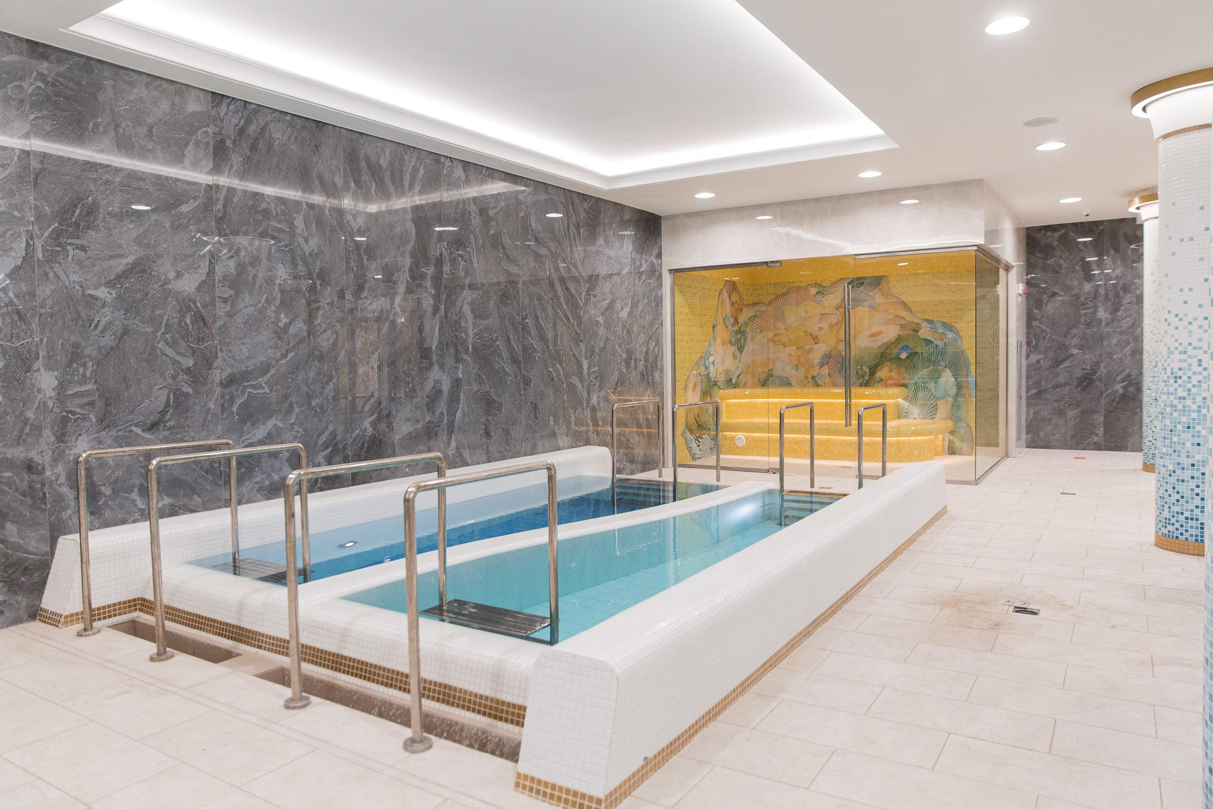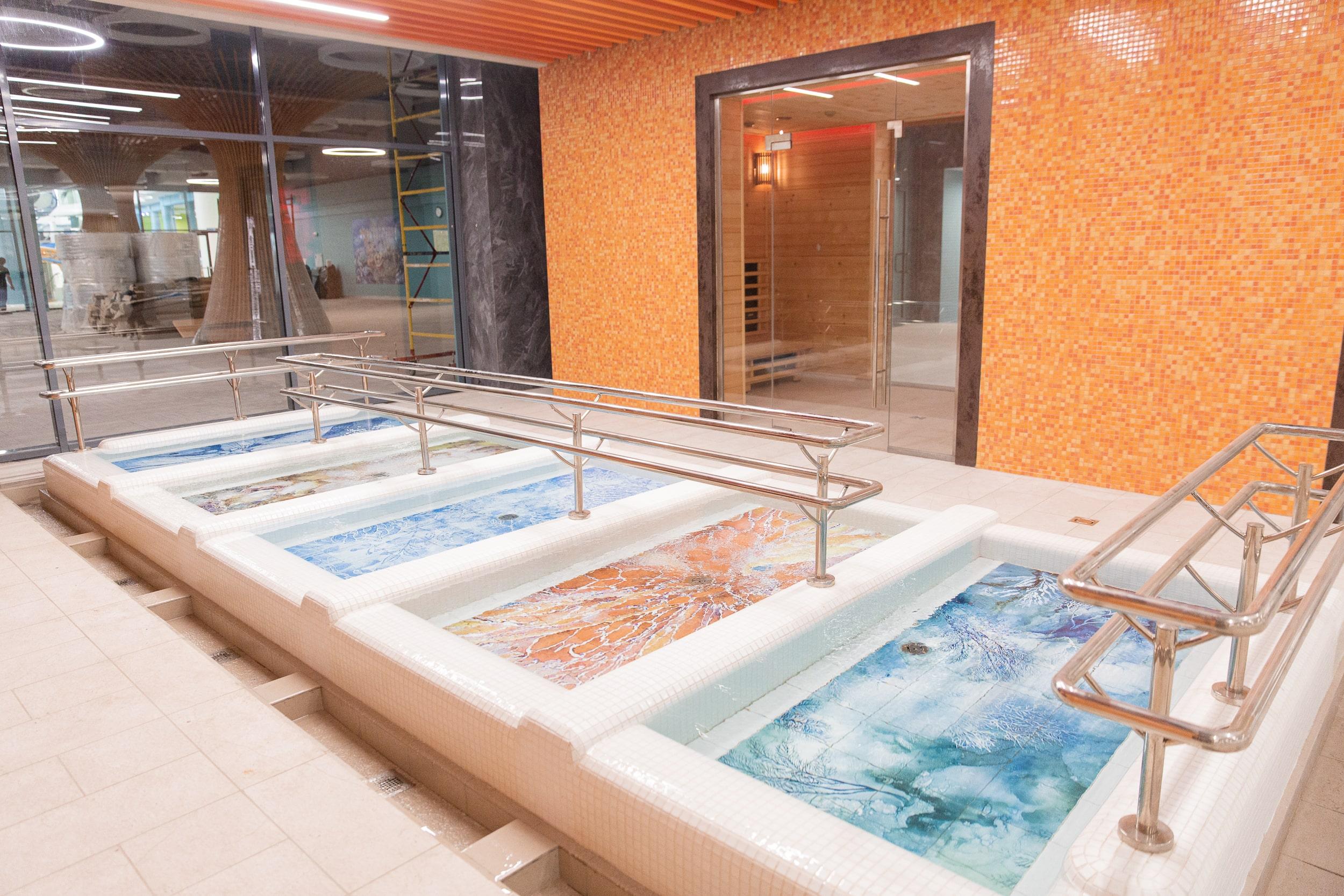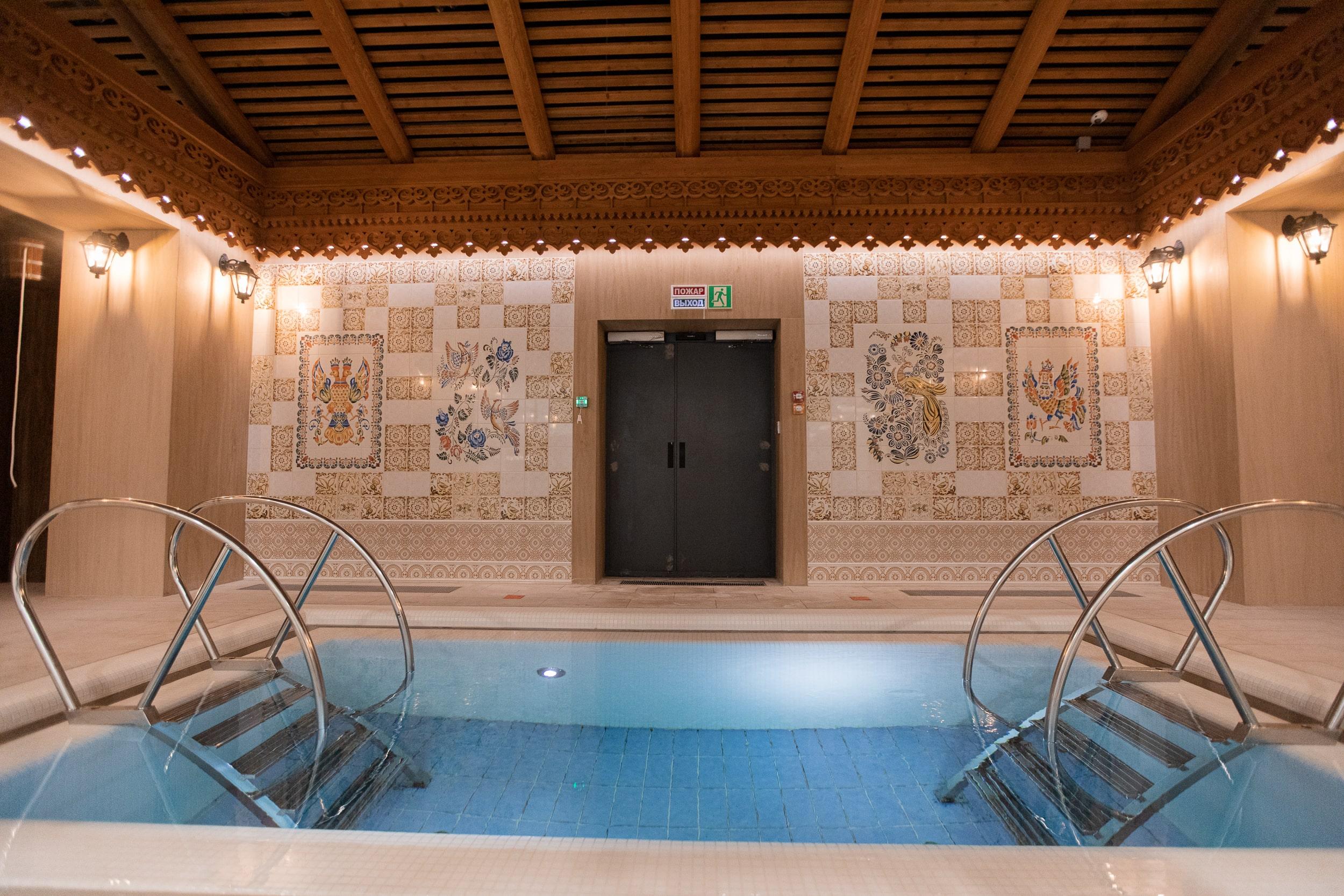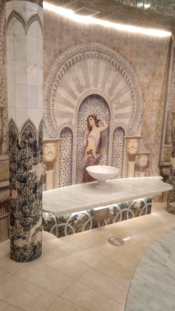 The design of the hammam and the entire thermal zone of Oceanis — a spa aquapark in Nizhny Novgorod, Russia — features handcrafted ceramic elements by the artisans of Laguz Studio.