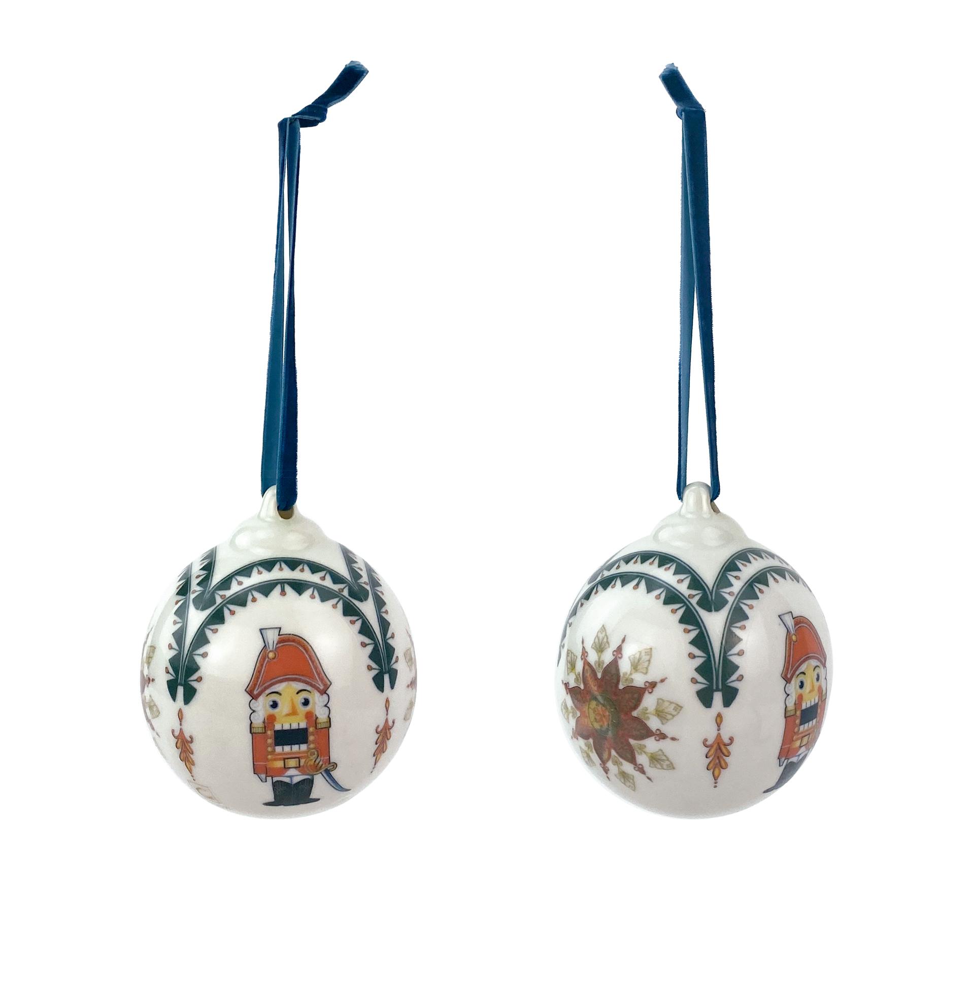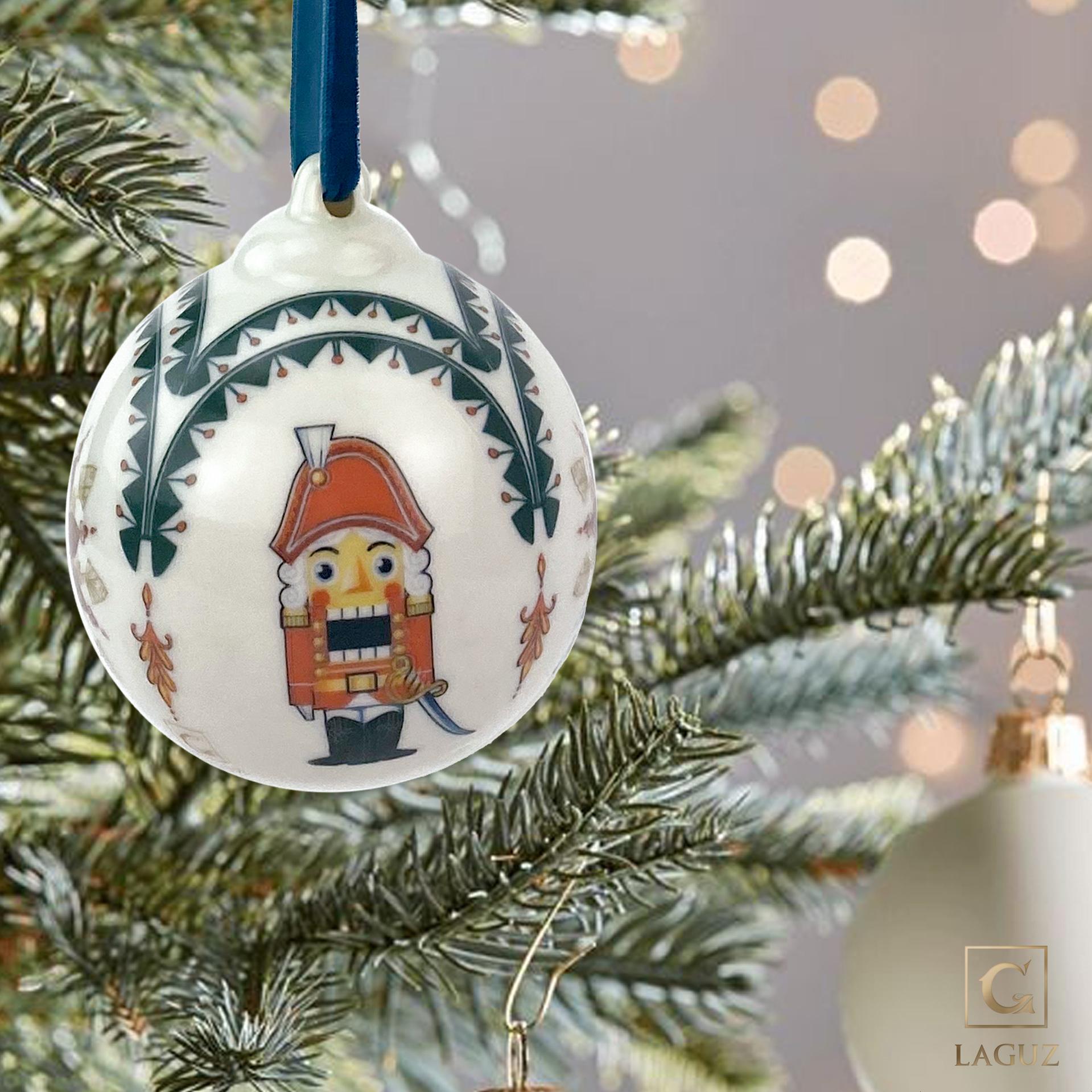 This delightful porcelain Christmas ornament combines the whimsy of a nutcracker design with the delicate beauty of snowflake patterns, creating a festive and timeless addition to your holiday décor.