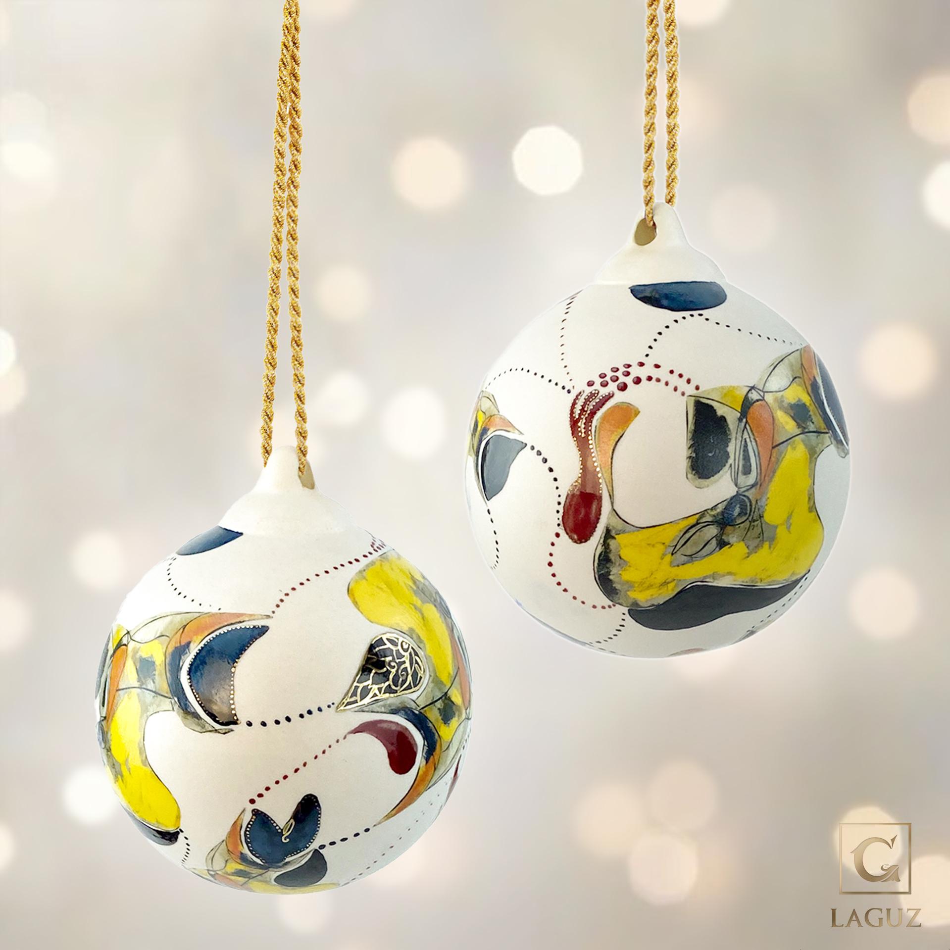 Elevate your holiday decorations with this exclusive, handcrafted Christmas ornament, adorned with the timeless artistry of Arshile Gorky. Every piece is meticulously hand-painted, capturing the bold colors and abstract elegance inspired by Gorky’s iconic work. Featuring luxurious accents in real gold, silver, and bronze, this porcelain ornament is a blend of fine art and festive spirit. The intricate detailing and precious metals make it a true collector’s item, perfect for art lovers and those who seek unique, sophisticated holiday decor. This ornament is more than a decoration; it’s a celebration of art, heritage, and holiday warmth. Decorate your tree with a piece of artistry that will be cherished for generations.