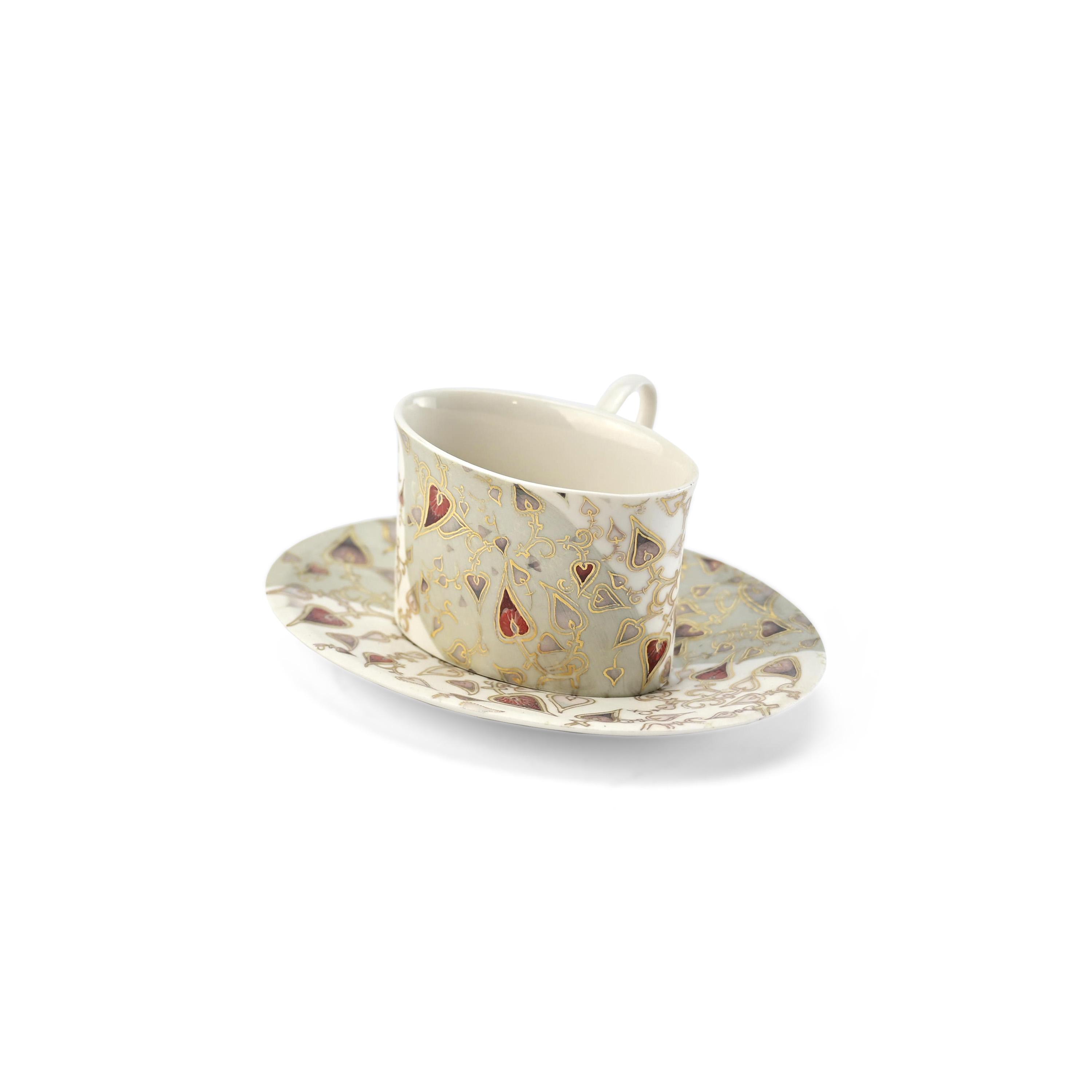 This exquisite set, featuring a porcelain coffee cup with a saucer, is adorned with Eastern ornamentation and is a stylish and functional addition to your coffee service. The vibrant pattern in shades of gold, red, purple, and yellow highlights the luxury and sophistication of these pieces. Crafted with precision and elegance, the cup and saucer are not only practical for everyday use but also serve as decorative items, adding a touch of Eastern culture and refinement to your home.