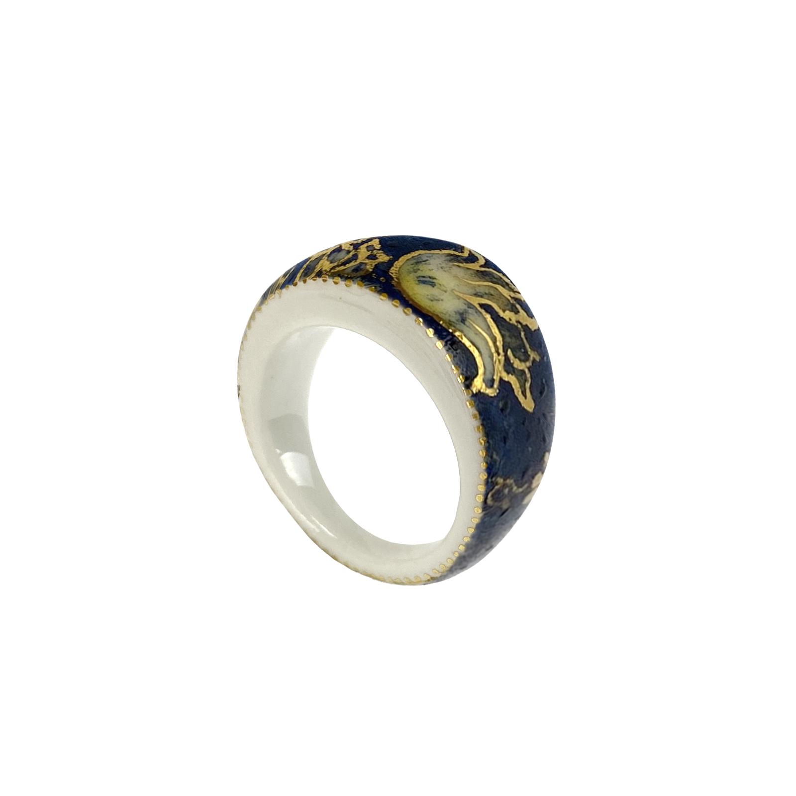 Exquisite handmade porcelain ring, a true work of art designed for those who appreciate elegance and craftsmanship. This ring features a stunning floral motif in delicate shades of gray, enhanced with luxurious 24k gold detailing that adds a touch of sophistication. The smooth, rounded shape ensures a comfortable fit, while the intricate design makes it a standout accessory for any occasion.