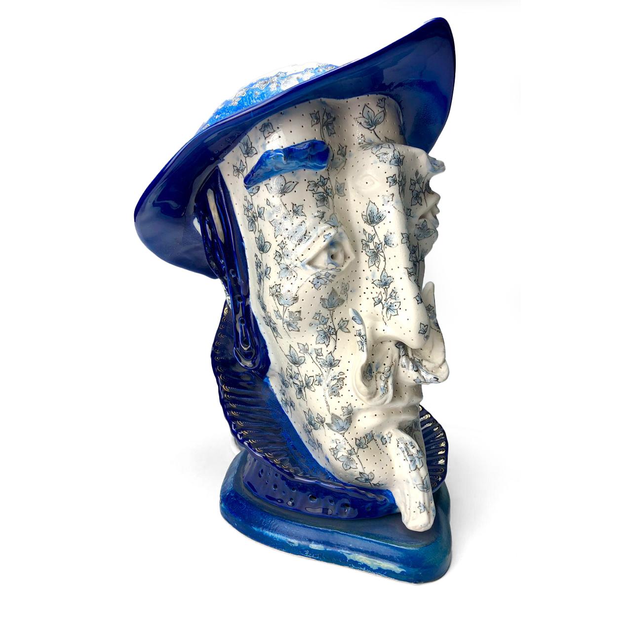 Transform your space with the captivating Don Quixote sculpture lamp by Gevorg Yeghiazaryan. Crafted from premium Limoges porcelain, this exquisite piece embodies the essence of Cervantes' legendary character with an abstract yet deeply expressive form. Meticulously detailed with delicate, hand-painted patterns and finished in a harmonious blend of teal and ivory, this sculpture invites admiration from every angle.