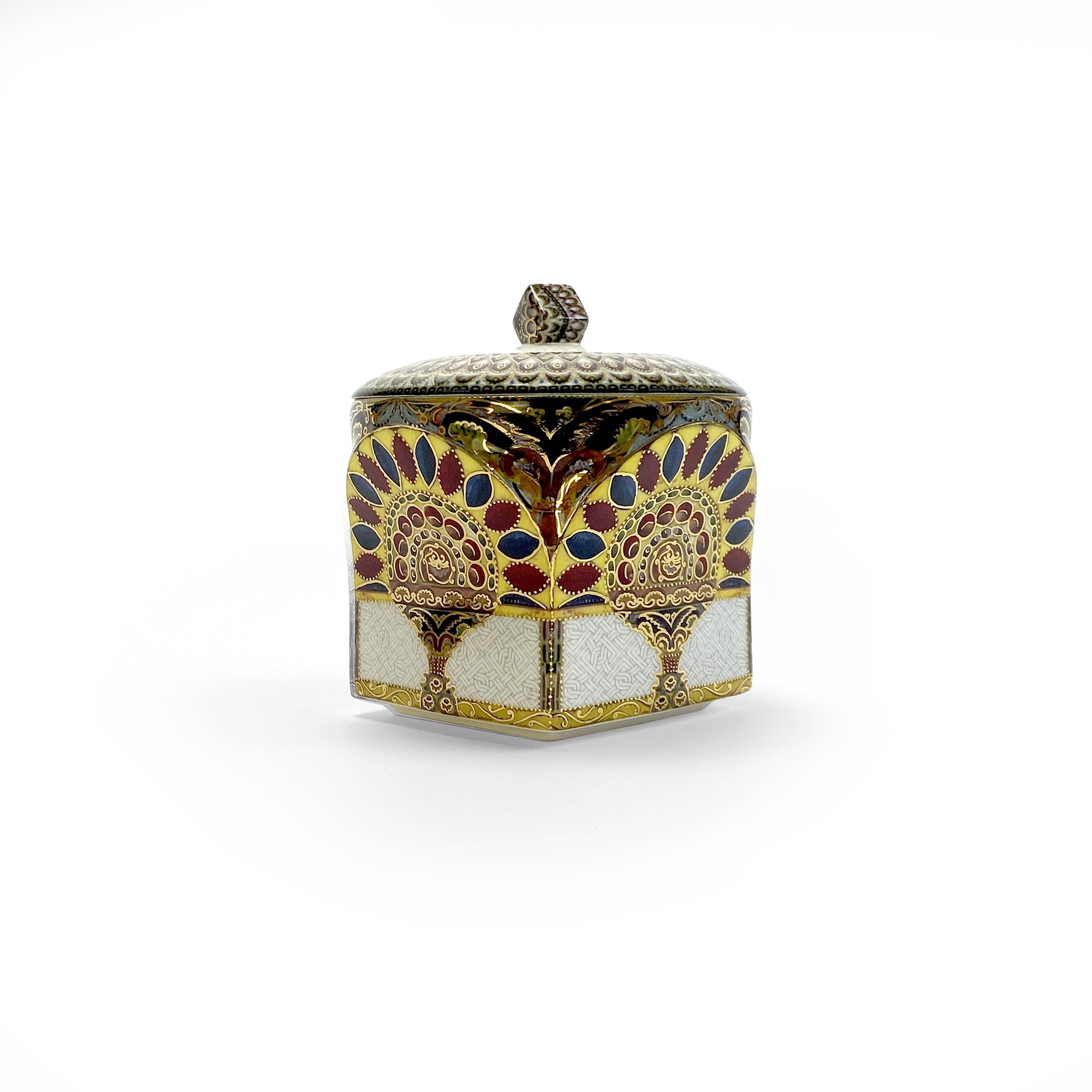 This exquisite porcelain sugar bowl, adorned with Eastern ornamentation, is a stylish and functional addition to your table. The vibrant pattern in shades of gold, red, purple, and yellow highlights the luxury and sophistication of the piece. Crafted with precision and elegance, this sugar bowl is not only practical for everyday use but also serves as a decorative item, adding a touch of Eastern culture and refinement to your home.